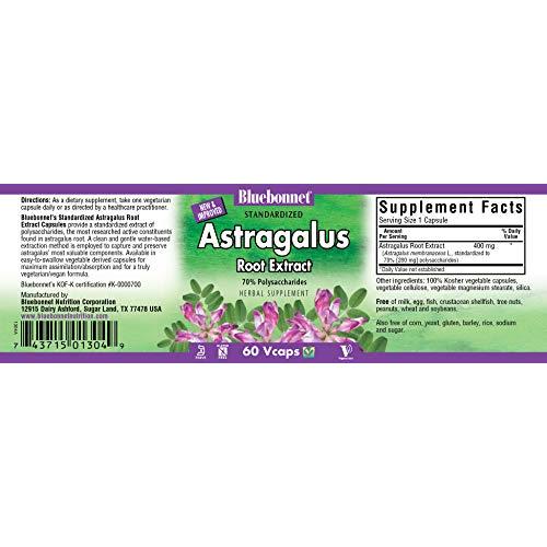 Bluebonnet’s Standardized Astragalus Root Extract Capsules Provide A Standardized Extract of Polysaccharides, The Most Researched Active Constituents Found in Astragalus Root. A Clean And Gentle Water-Based Extraction Method is Employed To Capture And Preserve Astragalus’ Most Valuable Components. Available in Easy-To-Swallow Vegetable Derived Capsules For Maximum Assimilation/Absorption And For A Truly Vegetarian/Vegan Formula.
